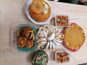 Каждое блюдо должно было соответствовать двум условиям: быть простым в приготовлении и полезным, а также приготовленным с любовью. С этим заданием все справились на «отлично»! На столе гостей радовали чебуреки с тыквой, дрожжевой рулет с нежной начинкой, шарлотка с тыквой и яблоками, тыквенный горшочек с кашей и сухофруктами и тыквенные оладьи — всё красиво оформлено и приготовлено с душой.